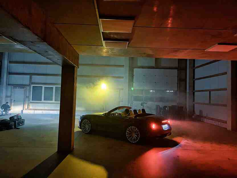Alles, wofür normalerweise 5 Drehtage eingeplant werden, musste nun in 2 Drehtagen geleistet werden. Am ersten Drehtag hatten wir so 16 Stunden Drehzeit und unseren ersten Nachtdreh vor uns. Am zweiten Tag standen die Fahraufnahmen und die Details auf dem Programm. Gedreht wurde mit professionellen Kameras und einem umfangreichen Equipment von der Beleuchtung bis zur Nebelmaschine. Gegen 22 Uhr waren wir alle geschafft und gleichzeitig glücklich, so tolles Material in so kurzer Zeit produziert zu haben.